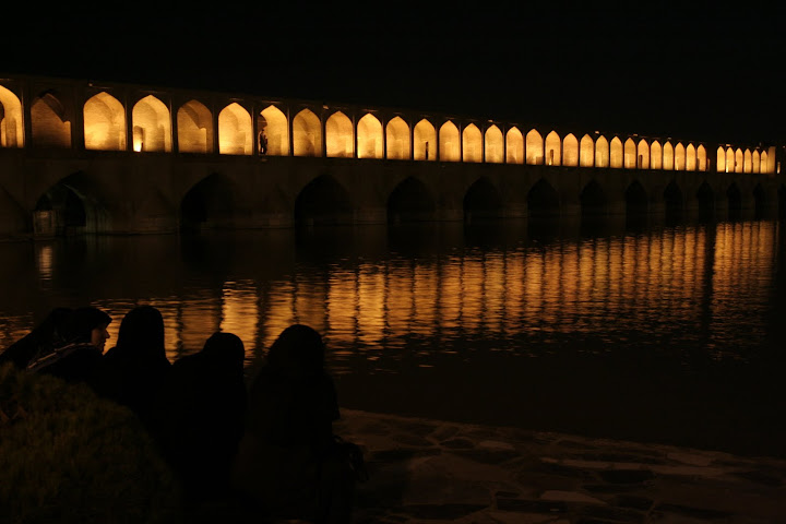 İsfahan turuna başlamadan önce adet olduğu üzere köprü altı çayhanesinde çaylarımızı içiyoruz. Burası daha sonra tekrar ziyaret edeceğimiz Sie se Pol köprüsünün kemerlerinde oluşturulmuş bir mekan. Yakıcı sıcaklarda ayaklarınızın altından akan sularla serinliyorsunuz. Çay ve nargile servisi var. Ayrıca etli sebze diyebileceğimiz abguşt da söyleyebilirsiniz.