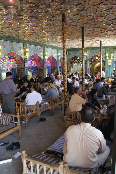 Bu otantik lokanta meydan ile yüzleşmeden önce iyi bir durak. Yemeğinizi yerken – dinlenirken – İran’ı keşfetmeye devam edebiliyorsunuz. Ahşap işlemeli – vitraylı pencereler, sedirler, aynalı tavan, İranlılar…